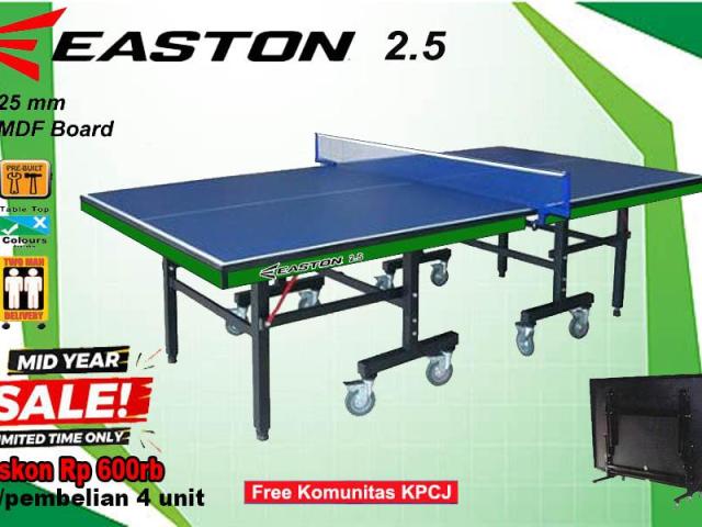 Hadirkan pengalaman bermain tenis meja terbaik di rumah, kantor, atau club Anda dengan Meja Pingpong EASTON 25. Dibangun dengan material premium dan standar internasional, meja ini menjadi pilihan utama untuk pemula, hobiis, maupun latihan serius.